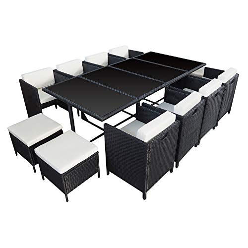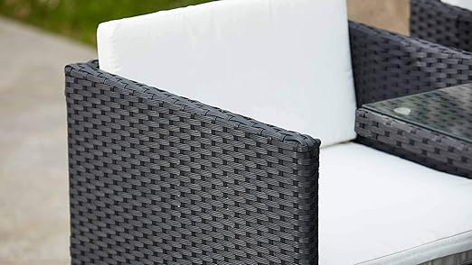 Tectake salon de jardin lausanne 2 places en résine tressée encastrable cadre en acier noir envie de profiter au maximum de votre balcon à la monaco 8 : Structure en acier galvanisé salon encastrable, coussins à bords gansés fournis, tous nos fauteuils sont munis de poignées, plateau en verre trempé, noir, jusqu'à 8 personnes à table ! Retrouves des idées de jardin ici :