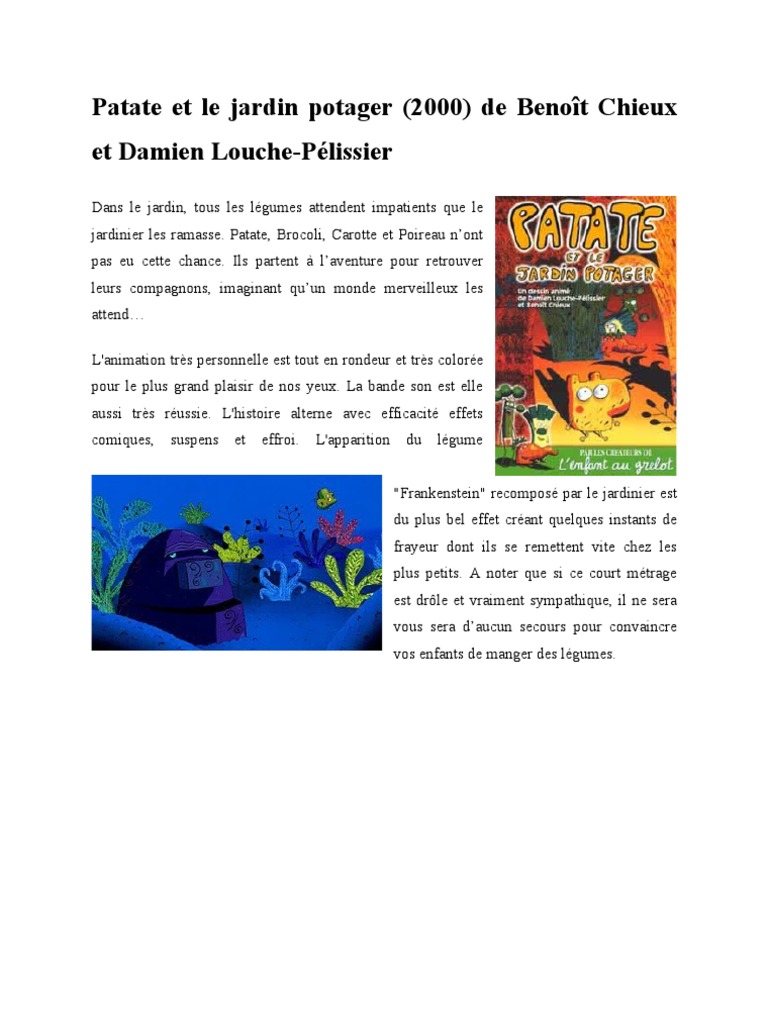 Patate et le jardin potager. Movie abyss patate et le jardin potager. Il retrouve ses amis et découvre une étrange serre, où vit un légume monstrueux. Le monde qu'ils découvrent n'est pas celui auquel ils s'attendaient.